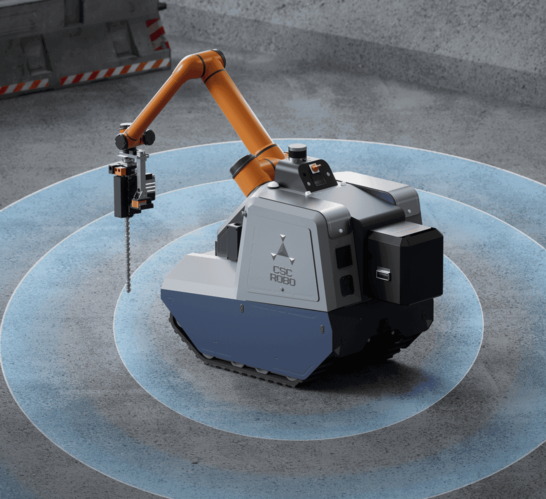 Drillcorpio (Model Df) is a self-navigating drilling robot. With its advanced capabilities, Df is capable of performing drilling tasks on various surfaces including ceilings, floors and walls. It can drill holes autonomously according to the drilling plan imported from layout drawings. With the auto-navigation technology, Df can move autonomously throughout the work area, dynamically adjusting its path to avoid obstacles and ensure safety. Model Df is suitable for both E&M installations as well as civil works.