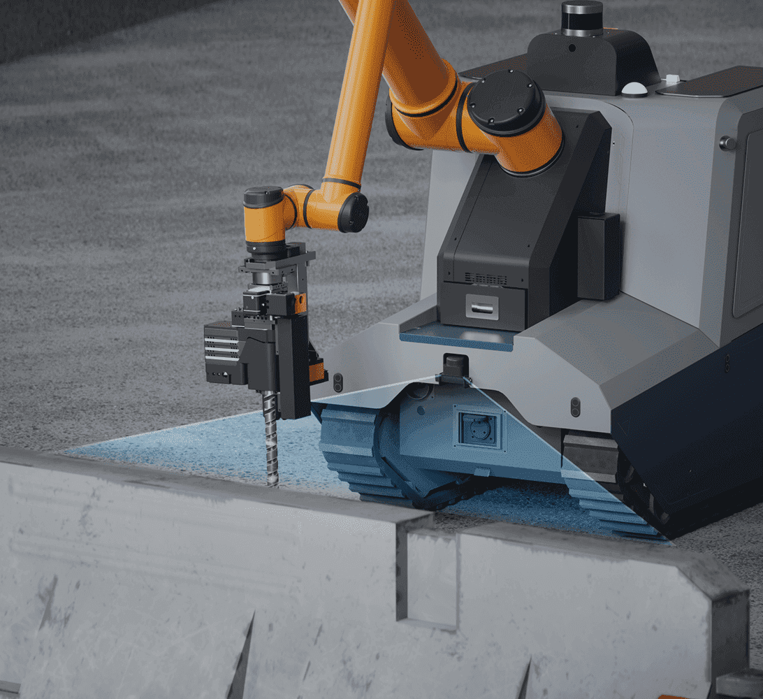 Drillcorpio Df is a state-of-the-art, fully autonomous and self-navigating drilling robot capable of working on floors, walls, and ceilings. It operates independently by reading digital construction plans (BIM/CAD), making it suitable for large-scale, complex installations.